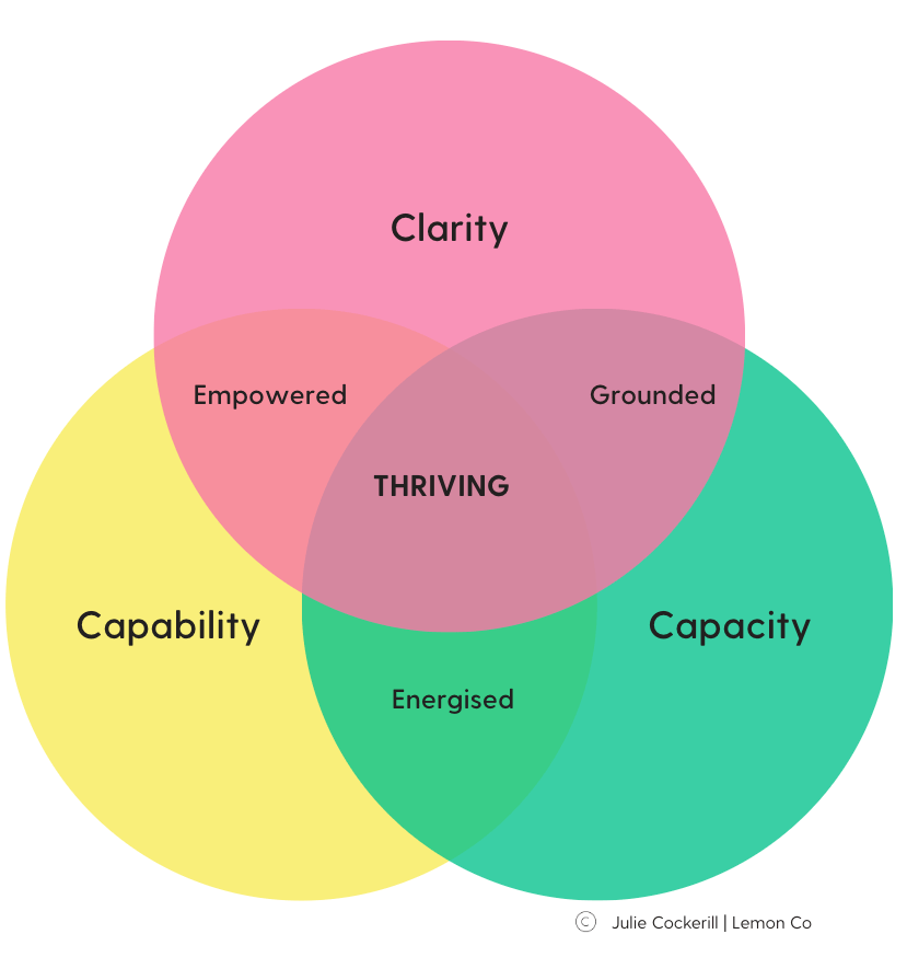 Along with your overall Thriving Score, you’ll receive your Clarity, Capacity, and Capability scores. Additionally, a personalised PDF report will be emailed to you, which contains a detailed breakdown of the core drivers of sustainable performance.